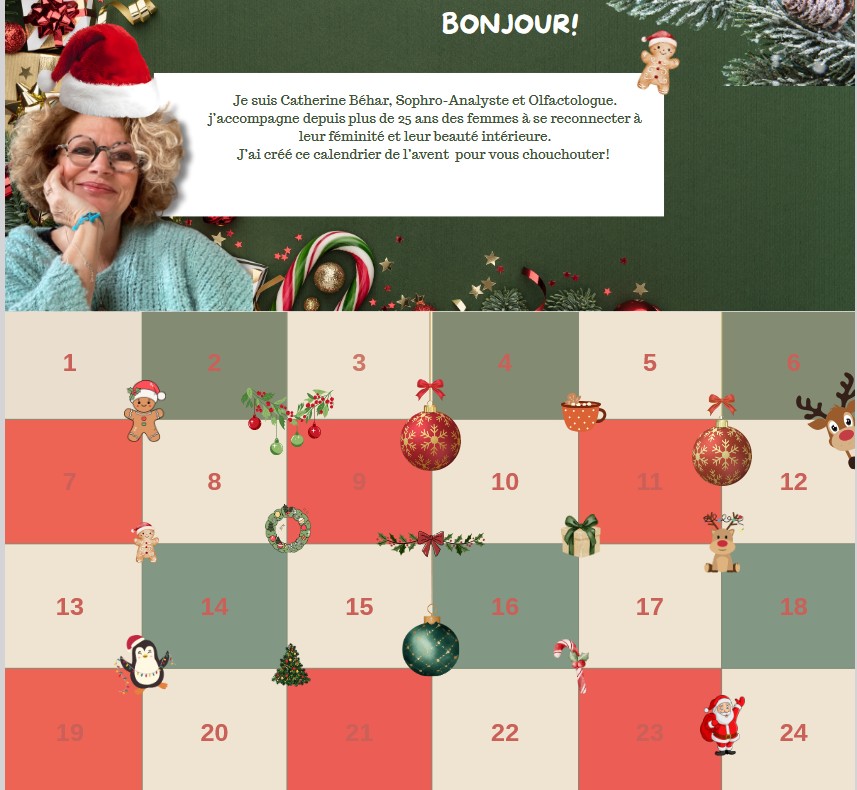 Je m'appelle Catherine Béhar, je suis accompagnatrice psycho-corporelle et Aromatologue spécialisée en Olfactologie. Mariée, maman de deux grands enfants, grand-mère de sept adorables petits enfants